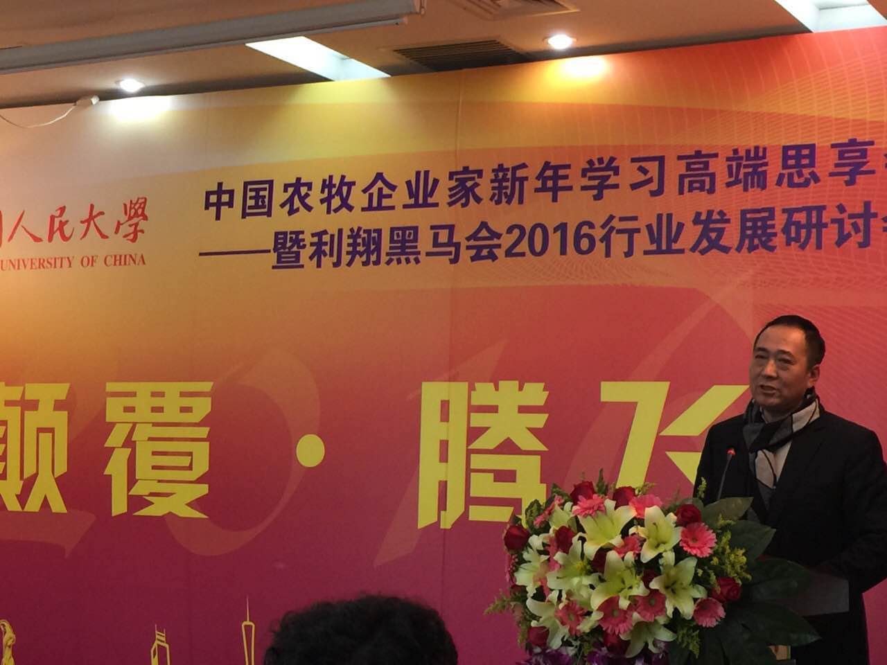 2016中國(guó)農(nóng)牧企業(yè)家新年學(xué)習(xí)高端思享會(huì) 暨利翔黑馬會(huì)2016行業(yè)發(fā)展研討會(huì)勝利召開(kāi) —— 張利庠教授:跨界思維顛覆行業(yè)思維 — 世界是一個(gè)系統(tǒng)、不是一個(gè)專業(yè);消費(fèi)綁架生產(chǎn)、金融決定實(shí)業(yè)、系統(tǒng)大于專業(yè);文化和心態(tài)顛覆技術(shù)和生存 — 從“取勢(shì)”到“明道”,不僅是賺錢、還要為全人類面臨的重大挑戰(zhàn)提出解決方案,從浮躁到安穩(wěn),企業(yè)家應(yīng)該為興趣、為理想、為夢(mèng)想而創(chuàng)業(yè)創(chuàng)新,"明道"未來(lái)!會(huì)上和農(nóng)牧業(yè)集團(tuán)董事長(zhǎng)方彥明先生也作了精彩分享!