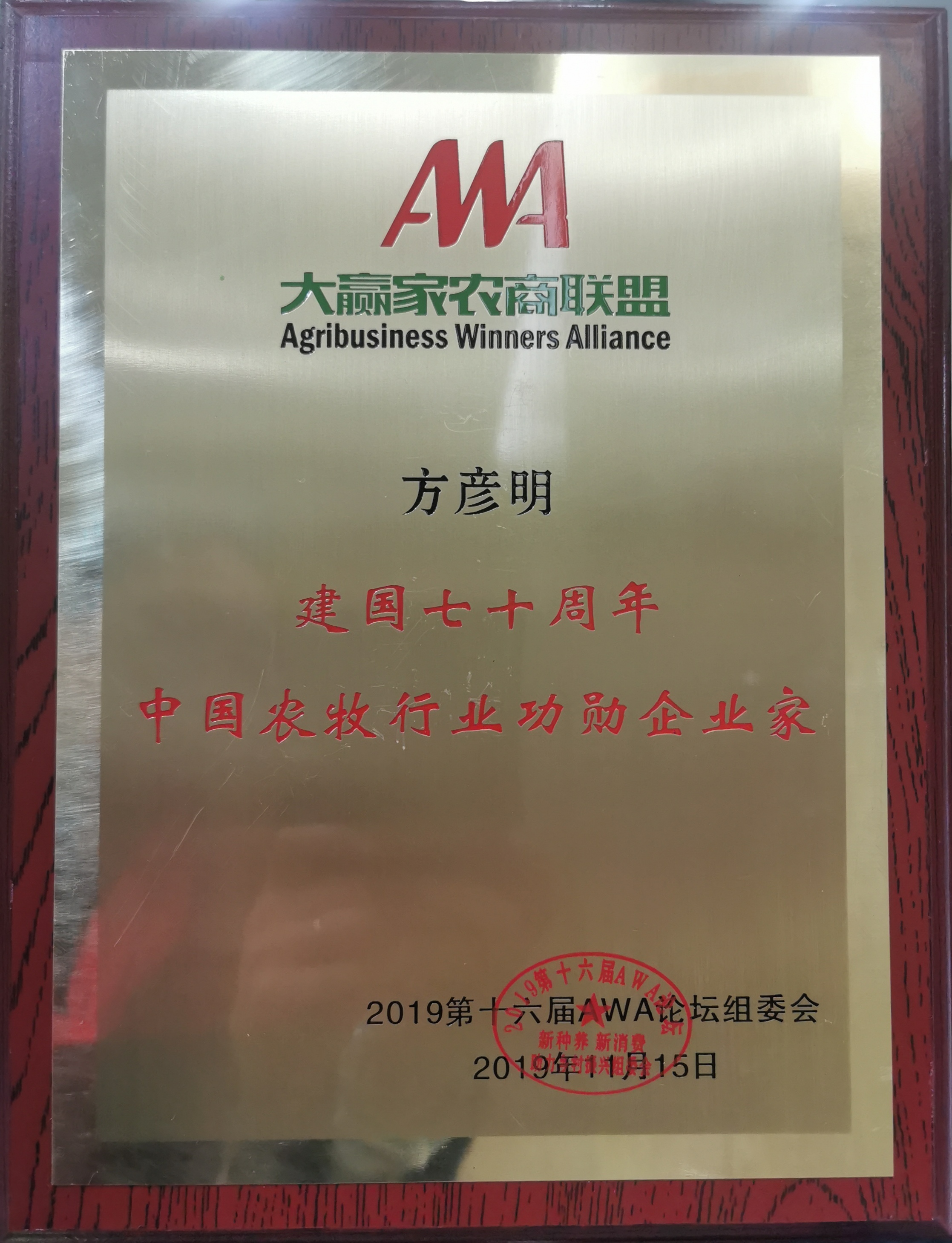 11月14-16日,由鄉(xiāng)村振興實施路徑研究國家重大課題組和AWA大贏家農(nóng)商聯(lián)盟主辦的2019第十六屆大贏家(AWA)論壇在北京市中國人民大學(xué)逸夫會議中心隆重召開,吉林和農(nóng)牧業(yè)集團董事長方彥明先生榮獲建國70周年中國農(nóng)牧行業(yè)功勛企業(yè)家。