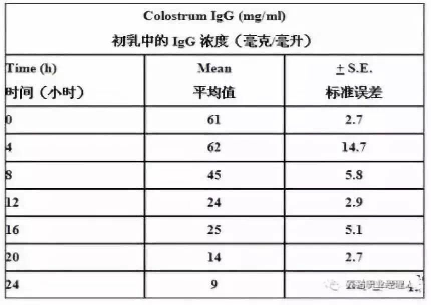 寄養(yǎng)其實對母豬和仔豬來講均是一種應(yīng)激,且寄養(yǎng)易導致疾病交叉感染,所以產(chǎn)房應(yīng)盡量減少寄養(yǎng),特別要嚴禁跨單元寄養(yǎng)。當產(chǎn)后母豬泌乳量嚴重不足、產(chǎn)仔數(shù)過多、母性差、母豬體弱多病、有惡癖或甚至母豬死亡時才可考慮寄養(yǎng),寄養(yǎng)應(yīng)在仔豬出生后24小時內(nèi),并保證仔豬吃到充足初乳后進行。由表1可以看出,初乳中的IgG濃度其實到了產(chǎn)后12小時只有剛產(chǎn)完時的一半都不到。產(chǎn)后24小時幾乎只有剛產(chǎn)完時的1/7的濃度。